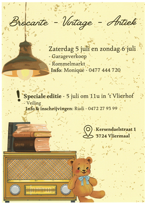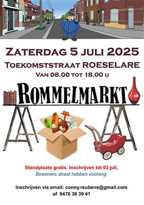 Rommelmarkt Cd-, platen en boekenbeurs Openluchtrommelmarkt 2de hands speelgoed en baby beurs Garageverkopen en rommelmarkt 2de hands kledingbeurs Braderij Straatrommelmarkt