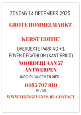 PINA'S ROMMELMARKT terug in de SPORTHAL " HIGRO " 1500m² !! Industrieweg 228 BAAN GENT-EEKLO. Jaarlijkse gekende massale volkstrekker van formaat. Standhouders! Massale belangstelling verzekerd!! Standplaatsen 4,50 euro/lm in 't midden of 5,50 euro/lm voor Muurstand (Steeds 2 m Diep) MASSALE PUBLICITEIT VERZEKERD !!! Wegens de grote belangstelling, vervroegd Opstellen zaterdag vanaf 17u00 tot 19u00 of zondag vanaf 07u00. Inkom 2,50 euro of 2,00 euro met kortingsbon van vorige Pina's Rommelmarkten o.a. van Zondag 16 NOV. Sporthal " HIGRO " 1500 M2 Industrieweg 228, MARIAKERKE ( Bij GENT ) of van zondag 23 Nov. te HAMME Sporthal GO ! 1500 M2 Loystraat 70. Nog nooit eens mee gedaan op een Rommelmarkt ? Geen probleem, wij helpen U wel de weg te vinden. BE55 0632 1041 3344 PINA's Rommelmarkt. Iedereen is welkom, Iedereen kan deelnemen, voor info bel of mail. of stuur een SMS (+32)477/ 38.34.02 ^ [email protected], Gewoon DOEN ! [bekijk details]