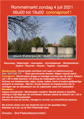 Rommelmarkt op de Sint-Pieterswijk Ieper. Gratis standplaatsen, auto mag bij de stand blijven.