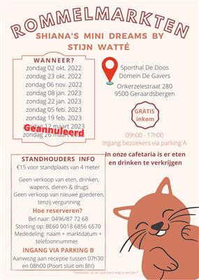Door werkzaamheden in en rond het domein de Gavers, hebben wij samen met het bestuur besloten om de 2 laatste datums van de rommelmarkten, dus 12 maart en 26 maart 2023, helaas niet meer te laten doorgaan.