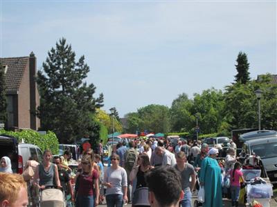 In deze groene wijk van 750 gezinnen, gelegen tussen de spoorweg en de Schelde, nemen niet minder dan 250 (!) buurtbewoners hun hebbedingetjes uit voor of in hun garage, tegelijkertijd vindt er in de Restingenlaan en op het plein aan de Veerdamlaan een heuse rommelmarkt plaats.