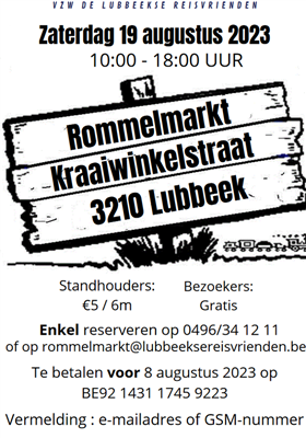 Naar jaarlijkse traditie organiseren de Lubbeekse Reisvrienden een rommelmarkt op de Kraaiwinkelstraat en omliggende straten.