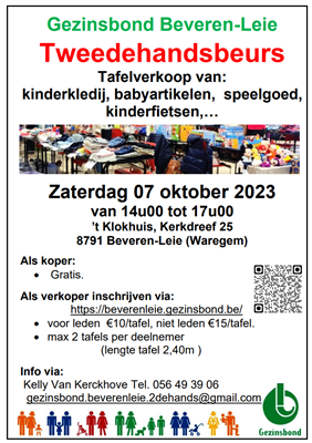 Tafelverkoop van baby- en kinderkledij, speelgoed, buggy’s autozitjes, parken, bedjes, ..alles in goede staat.