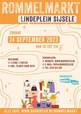 Nieuwe rommelmarkt op zondag 24 september 2023 bij het evenement Barrio Tilo ter gelegenheid van de kermisfeesten in Sijsele. De rommelmarkt gaat door in open lucht rond het Lindeplein in Sijsele-Damme in de Kloosterstraat en Kerkakker. Het is dé ideale plaats om spullen, verzamelobjecten en antiek te vinden tegen een betaalbare prijs.