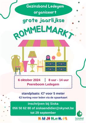 Diverse standhouders die tweedehandsgoederen te koop aanbieden. Zowel binnen als buiten.