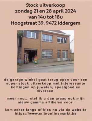 Grote stock uitverkoop met interessante kortingen op juwelen, speelgoed en diversen.