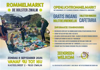 De rommelmarkt, met cafetaria en terras, kinderanimatie en eet- en drankgelegenheid, gaat door op 8 september 2024.