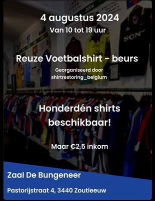 Reuze voetbalshirt beurs ! Honderden shirts ! Gezellige zaal met bar, prijzen voor iedereen.