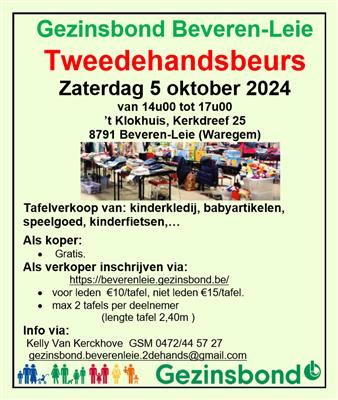 Let op, het aantal tafels is beperkt! Schrijf tijdig in (voor 25 september) via https://beverenleie.gezinsbond.be/![]()