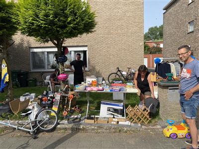 Jaarlijkse garageverkoop in de wijk Koekoek te Aartselaar.