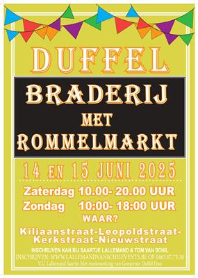 De braderij met aansluitend rommelmarkt (enkel op zondag) gaat door op zondag 15 juni 2025.