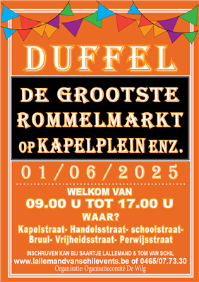 De rommelmarkt vindt plaats op de Bruul- Kapelplein-Handelsstraat- Schoolstraat-Vrijheidsstraat- Perwijsstraat
