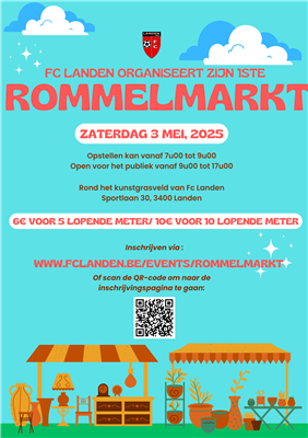 Op zaterdag 3 mei organiseert F.C. Landen zijn 1ste rommelmarkt rond het kunstgrasveld!
