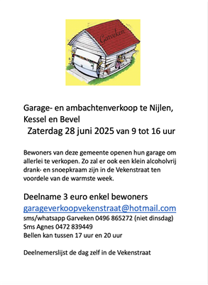 Garage- en ambachtenverkoop Nijlen, Kessel en Bevel.