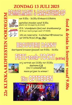 Garageverkoop in de Klinkaard en Blekte, deelnemerslijst te bekomen aan de feesttent.