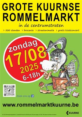 Rommelmarkt Kuurne in de centrum straten.