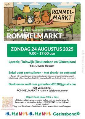 Inschrijven : mail naar [email protected] met vermelding van ROMMELMARKT + naam + telefoonnummer