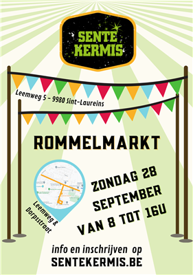 Naar jaarlijkse traditie vindt de rommelmarkt plaats op kermiszondag, dit jaar op zondag 28 september, met op het kermisplein een bar, kinderanimatie en live optredens.