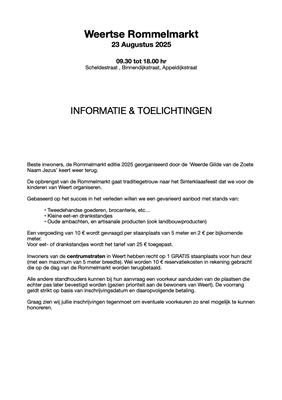 Door omstandigheden wordt de Rommelmarkt te Weert van 23/8/2025 geannuleerd.