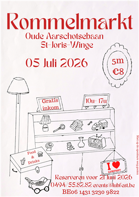 Onze jaarlijkse rommelmarkt gaat doorgaan op 5 juli 2026 en dit van 10u tot 17u.