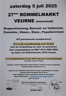 Rommelmarkt Cd-, platen en boekenbeurs Openluchtrommelmarkt 2de hands speelgoed en baby beurs Garageverkopen en rommelmarkt 2de hands kledingbeurs Braderij Straatrommelmarkt