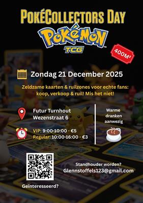 Op zondag 21 december 2025 organiseren we onze Pokemon Kaarten Beurs in Futur, Turnhout!